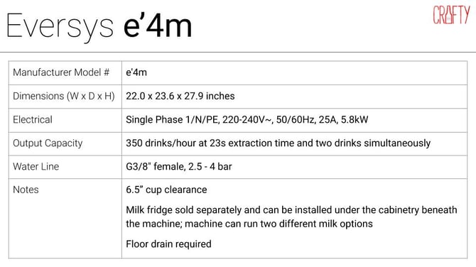 The Eversys e'4m is a powerful super-automatic espresso machine designed to deliver exceptional barista-quality beverages in high-volume office environments. With dual espresso modules and an integrated milk frothing system, it can prepare four drinks at once, making it ideal for bustling break rooms and busy mornings.