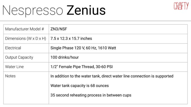 The Zenius uses Nespresso Professional pods, which differ from home-use pods.