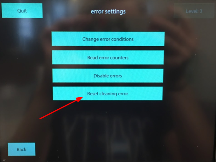 - Scroll to Error Settings > Reset Cleaning Error.